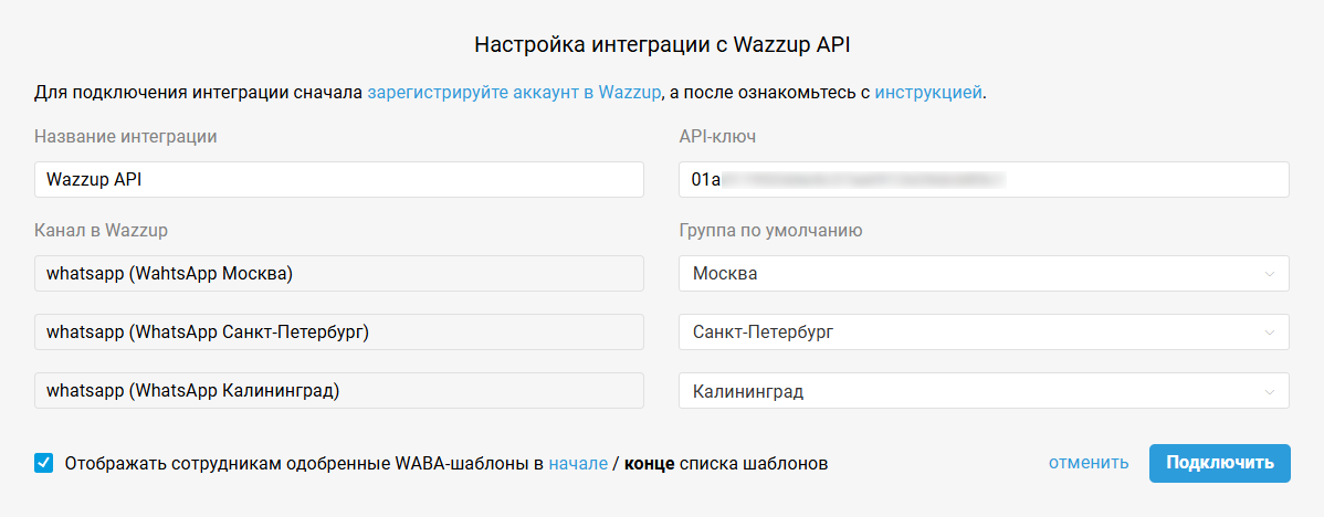 Интеграция с Wazzup