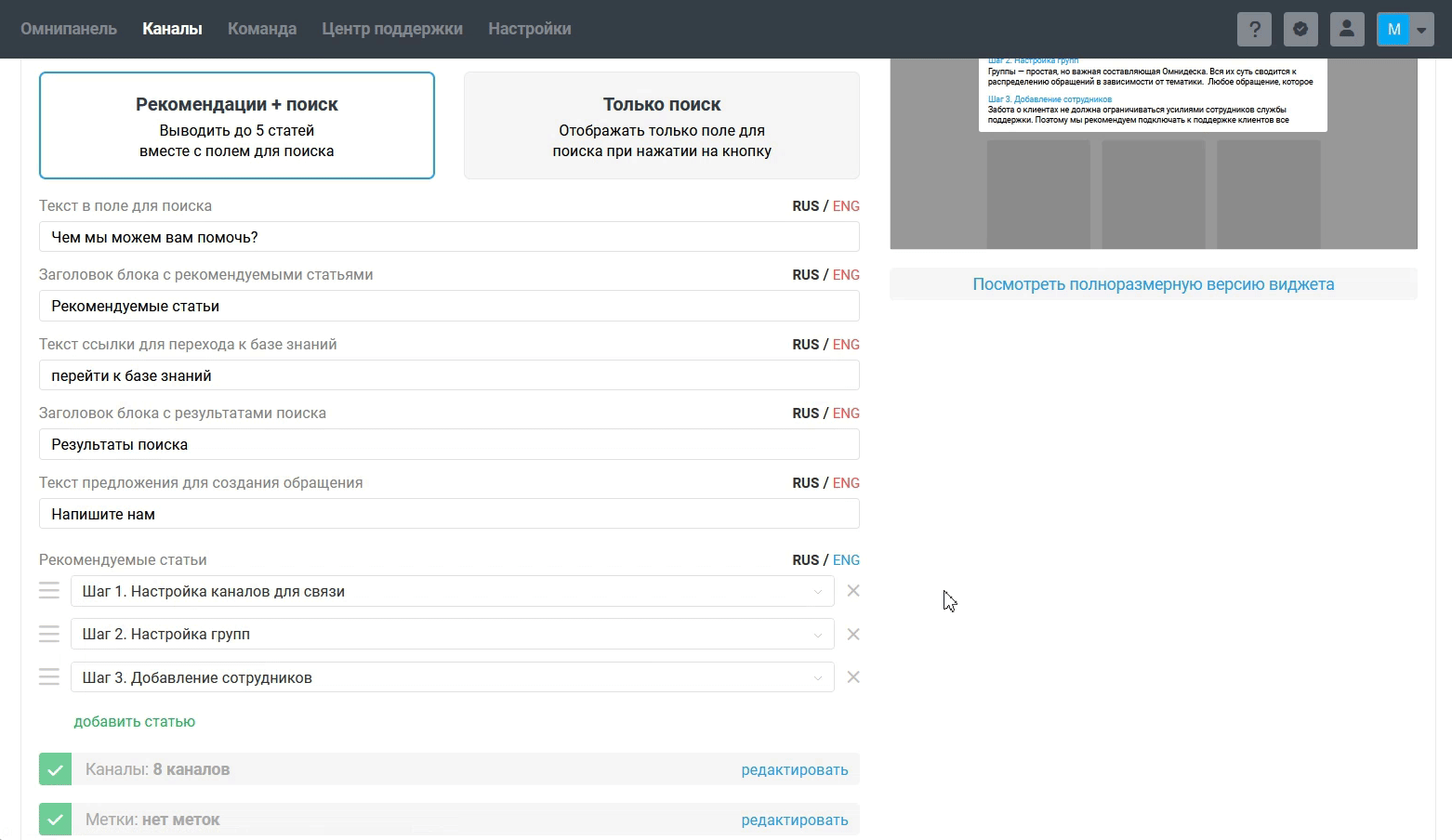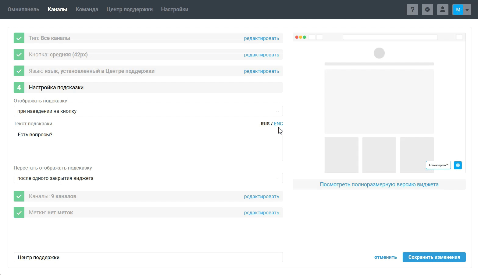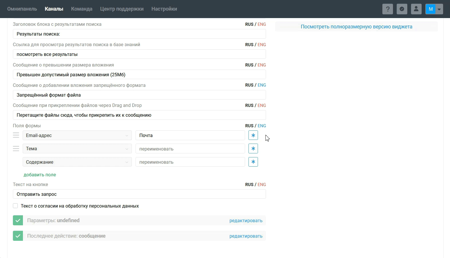 В этой статье описаны изменения на момент обновления функционала. Полное описание всех нюансов настройки и работы виджетов в Омнидеске — тут. Основная статья про мультиязычность тут.