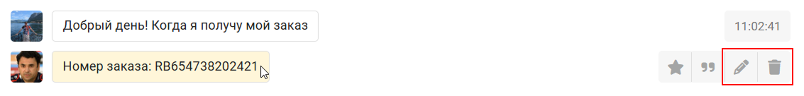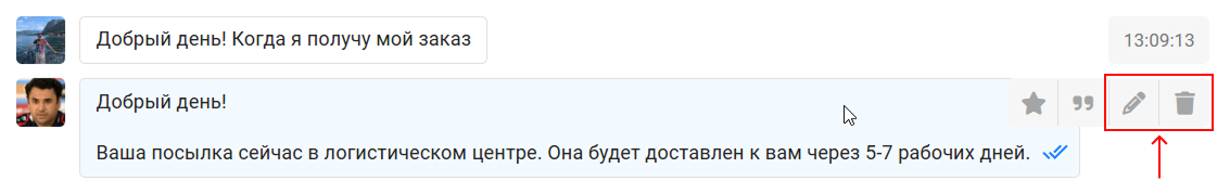 Если навести курсор на сообщение, справа появятся иконки редактирования и удаления.