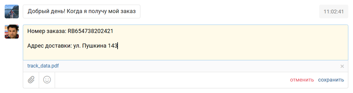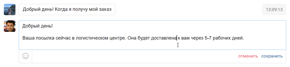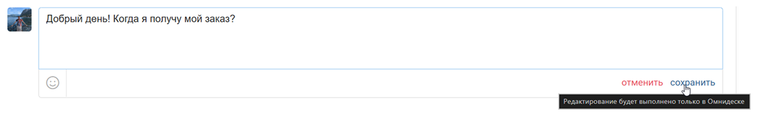 Если канал не поддерживает изменения или вы редактируете / удаляете ответ клиента, то результат отобразится только в интерфейсе Омнидеска, а в самом мессенджере или соцсети сообщение останется прежним.